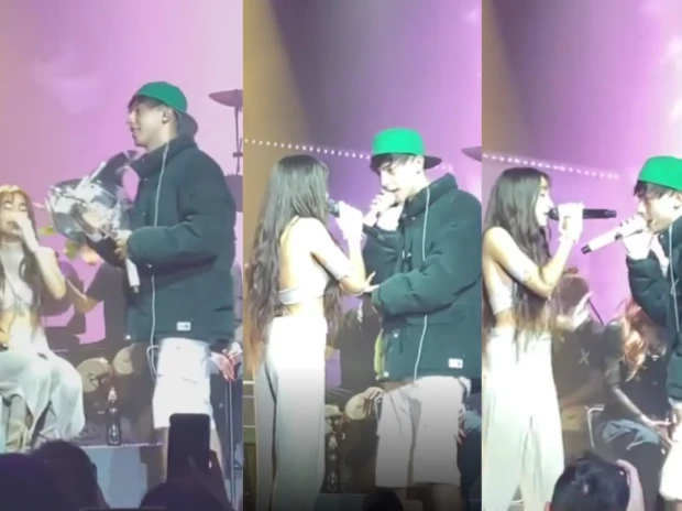 A punto de comenzar el tema, RusherKing entró al escenario para sorprender a su pareja con un ramo de flores y cantar el primer tema que sacaron juntos. María rompió en llanto de la emoción y el publico comenzó a gritar más fuerte aún.