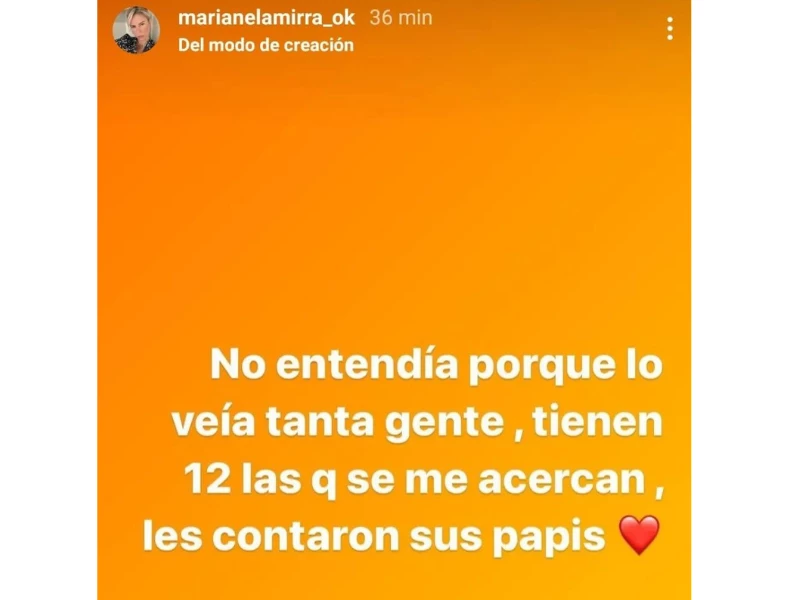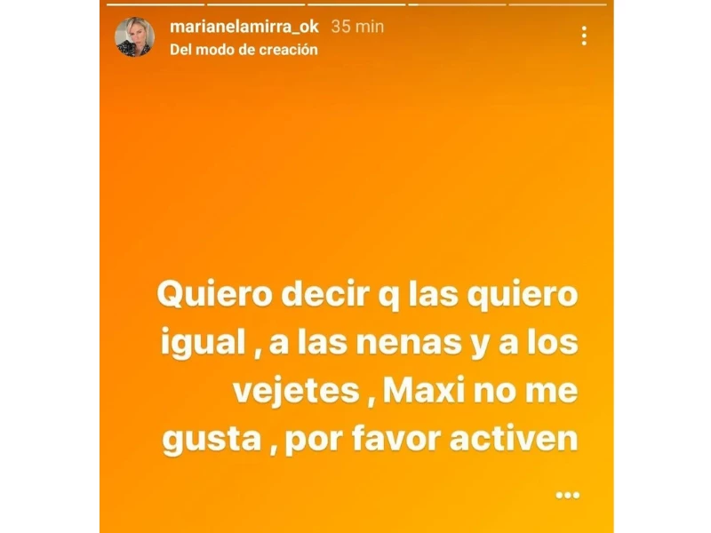 Luego, la tucumana agregó: “Ah, estoy de vacaciones, que Thiago perdone la espontánea, hay cosas peores. No entendía porque lo veía tanta gente, tienen doce años las que se me acercan, les contaron sus papis. Quiero decir que los quiero igual, a las nenas y a los vejetes, Maxi no me gusta, por favor activen”.