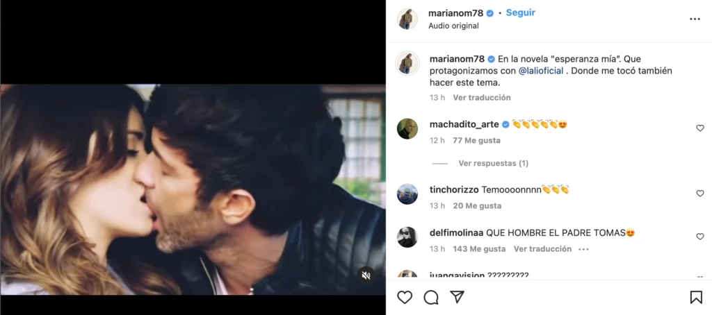 Sobre esa línea, el también tiktoker publicó el video en el que recuerda uno de sus grandes éxitos en la pantalla chica, acompañado del siguiente mensaje: “En la novela ‘Esperanza mía’. Que protagonizamos con Lali. Donde me tocó también hacer este tema”, escribió junto al clip donde se lo puede escuchar cantando “Me vuelvo loco por vos” mientras se suceden varias escenas románticas con Espósito.