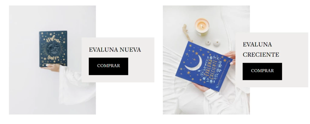 Es autora de un libro llamado Evaluna Creciente en el que comparte tips para acompañar a mujeres embarazadas y también con espacios en blanco para que cada una llene con sus memorias. Su otro producto editorial se titula Evaluna Nueva que está dedicado a mujeres recién casadas con consejos para los hogares. Ambos tienen un valor de 50 dólares.