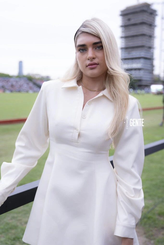 Consciente de que el Campo de Polo de Palermo es una vidriera, Marta estudió su outfit con estrategia, pero se llevó una sorpresa al llegar. "Es que me armé un look de lo que yo me imaginaba que se podía llegar a usar", explicó sobre su vestido camisero off-white y su gargantilla de oro amarillo.