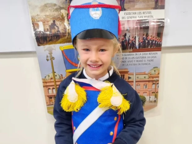 Matilda Salazar (5) escogió una particular manera para homenajear al General San Martín. Este viernes, a 173 años del deceso del prócer argentino, se vistió como granadero para un acto del jardín y enterneció a todos en las redes. Fue su madre, Luciana Salazar (42), quien compartió las imágenes de la pequeña.