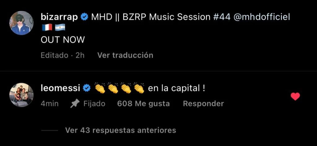 Al notar lo ocurrido, Messi dejó un comentario en la publicación de Bizarrap parafraseando el tema: "En la capital", escribió junto a varios emojis de aplausos y automáticamente se convirtió en viral. Luego, el capitán de la Selección Argentina compartió un video de sus hijos bailando al ritmo de la nueva music session.