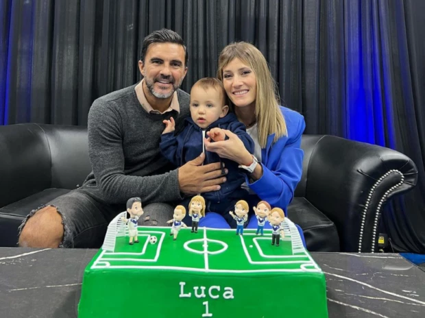 A través de redes sociales su madre compartió fotos de la torta de cumpleaños que tenía la forma de una cancha de fútbol, con los muñequitos de los jugadores y los arcos. La decoración era especial y personalizada, con seis muñequitos que representaban a la familia: Fabián en el arco, Mica en el medio campo, el pequeño Luca cerca de su papá y las hermanas de Luca, Indiana, Allegra y Sienna, del otro lado del campo.
