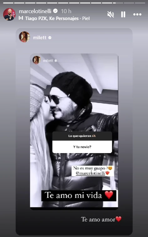 Rápidamente, Marcelo reposteó la historia y escribió: "Te amo mi amor". A lo que su pareja volvió a compartir la historia y agregó: "Te amo amor". De esta manera, la pareja se mostró realmente muy enamorada, dejando atrás todos los rumores de posible crisis o conflicto entre ellos.