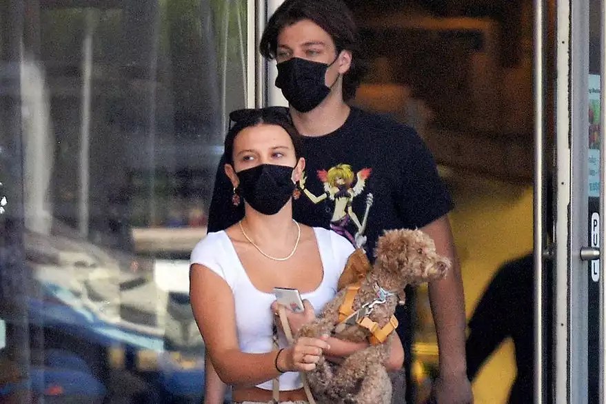 Ahora, los jóvenes fueron captados por las cámaras en la Gran Manzana. Millie lleva en brazos a su mascota, Winnie. Mientras ella luce un top blanco y pantalones estampados, él usa una remera rockera.