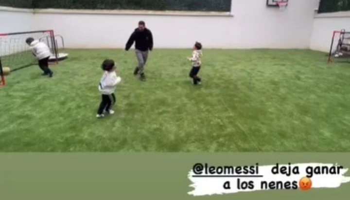 En el video, publicado en la cuenta de Instagram de Rocuzzo, se lo puede a ver a Leo y Ciro de un lado y a Thiago y Mateo del otro. Antonella estaba de espectadora, cuando empezó a ver que el diez no dejaba ganar a sus hijos, le dijo: "Deja ganar a los nenes".