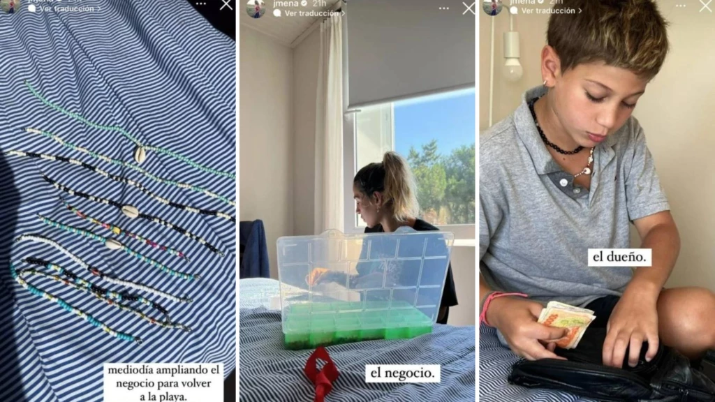Luego puso otra historia en donde mostró “el negocio” que es la caja en donde guarda las tanzas y las mostacillas para confeccionarlos. Y llegó el momento de conocer a “el dueño”, su hijo Momo, que es el encargado de vender en la playa estos accesorios y que en la foto que subió su mamá estaba cosechando el producto de su esfuerzo: varios billetes de alta denominación que guardaba en un morral.