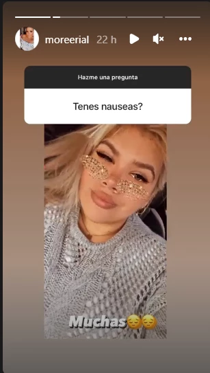 More Rial también contó algunos detalles de su vida diaria, al parecer la muchacha de 23 años se encuentra teniendo muchos síntomas a causas del embarazo y el que más sufre de todos ellos son las nauseas.