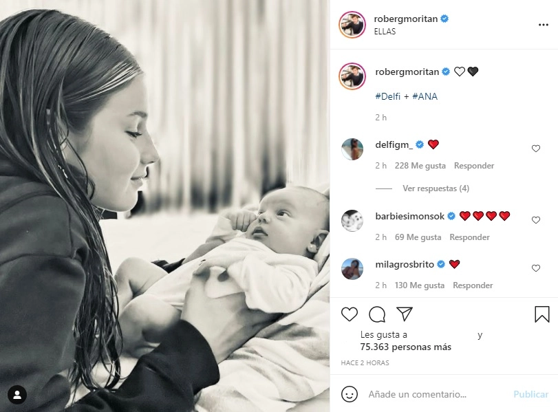 En su posteo, Roberto escribió junto a dos emojis de corazones y orgulloso de ser su papá: "Delfi + Ana". La publicación causó ternura y conmovió a más de uno, tanto es así que cosechó en pocas horas más de 75 mil 'likes'.