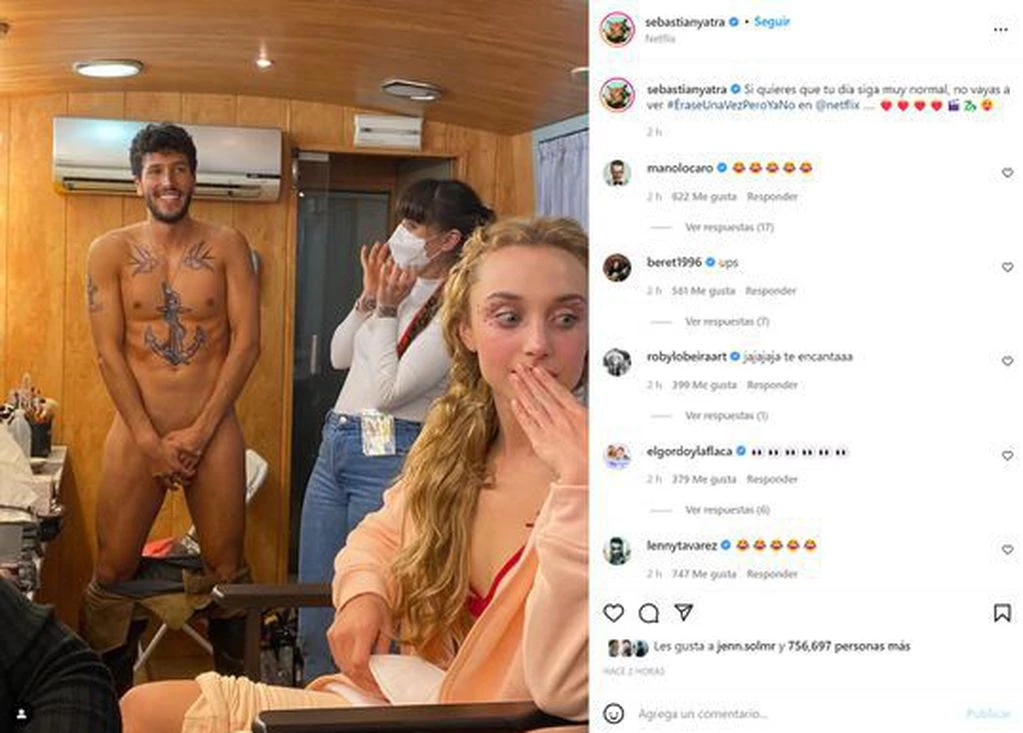 Sebastián Yatra encendió las redes sociales al compartir una foto suya totalmente desnudo. El cantante colombiano compartió el detrás de escena de “Erase una vez pero ya no”, la nueva producción de Netflix, en donde se lo ve como Dios lo trajo al mundo.