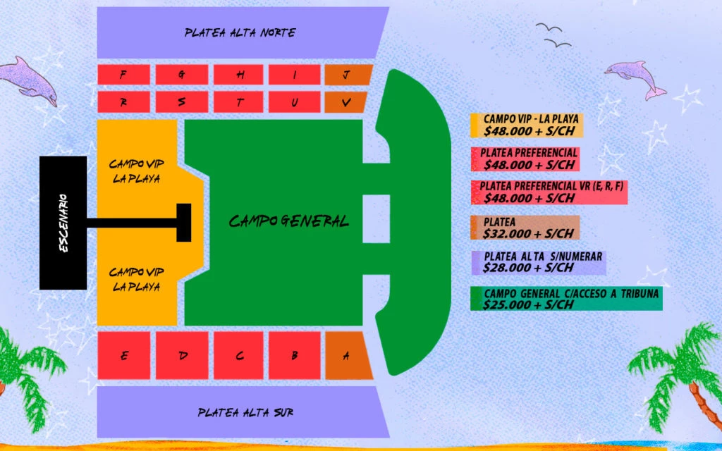 Como en todo show masivo estará prohibido entrar con banderas grandes, drones, mate, bolsos grandes, peluches, pelotas, cámaras profesionales, comidas y bebidas, inflamables y encendedores, selfie sticks, paraguas, líquidos, pirotecnia, carpas y sillas, armas, tablets y elementos punzantes.