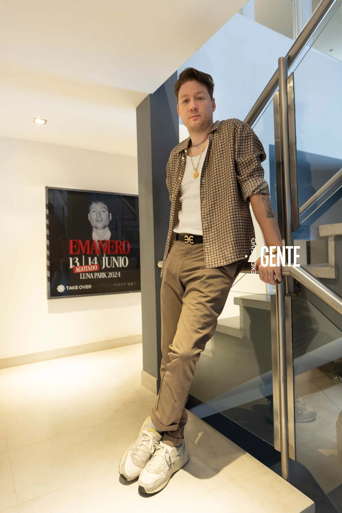 "¡Hola mis amigos de GENTE! ¿Cómo están? Soy Emanero y los voy a invitar a conocer un poquitito de mi estudio y mi lugar de trabajo", anuncia el músico posando su ojos verdes en el lente. Luego, con un ademán de su mano, nos invita a adentrarnos.