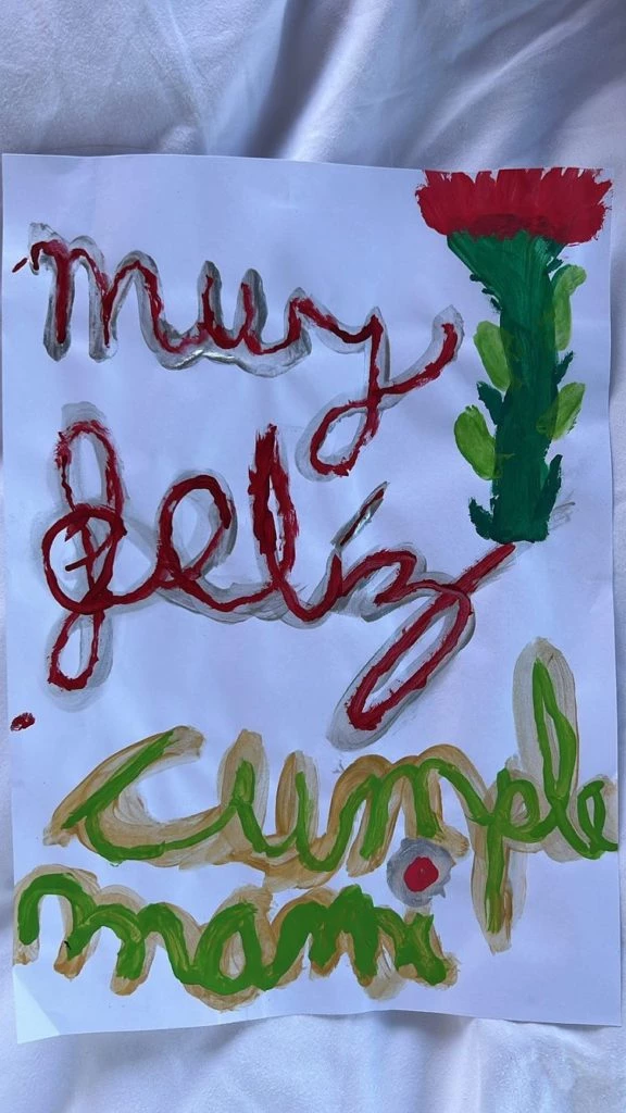 Este 19 de mayo Oreiro se encuentra celebrando sus 45 años de edad. El primer posteo que realizó en este día tan especial fue de un tierno regalo que le hizo su hijo Merlín Atahualpa Mollo. El niño decidió hacerle un dibujo hecho con temperas en el que se leía ‘felíz cumpleaños mami’. Además agregó un ramo de rosas a la obra.