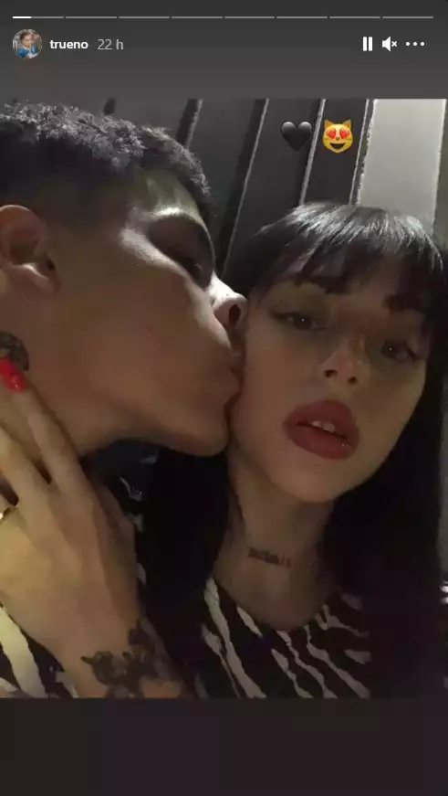 Feliz de estar con ella, Trueno comentó la tierna imagen con tres corazones en color negro y subió a su red social otra más donde se lo ve dándole un beso en la mejilla.