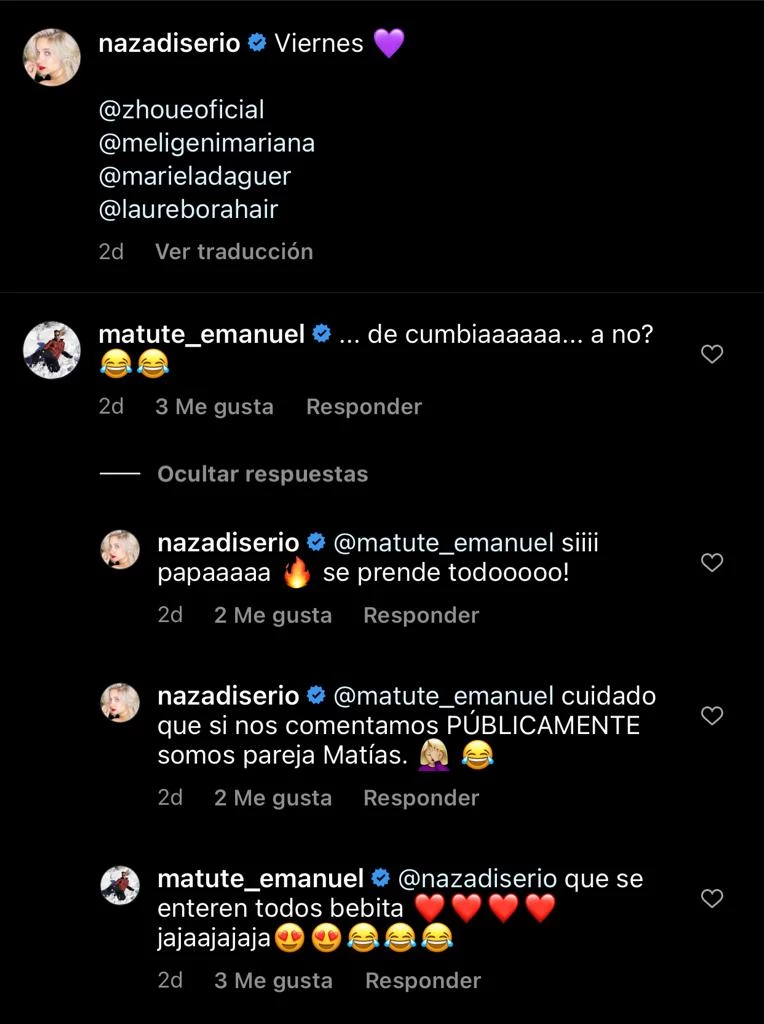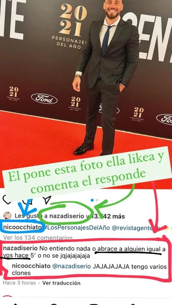 “No entiendo nada o abracé a alguien igual a vos hace 5 minutos o no se jajajaja”, le escribió Di Serio a Nicolás entre los miles de comments que recibió su publicación. La respuesta de Occhiato no se hizo esperar: "Jajaja tengo varios clones".