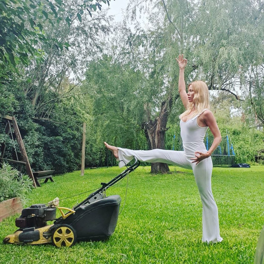 En otra oportunidad, se mostró a sí misma cerca de su cortadora de pasto, de las hamacas, y de la cama elástica que mantiene en el fondo. En este mismo jardín, el 15 de abril plantó un árbol sumándose a la causa de la ONG "A tree to breathe" (un árbol para respirar).