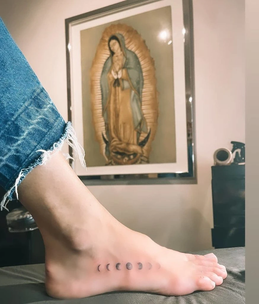 El tatuaje que desde ahora recorre el pie derecho de Nicole representa las fases de la luna. El ciclo lunar tiene cuatro fases que se ven reflejadas: Luna llena, cuarto menguante, Luna nueva y cuarto creciente.