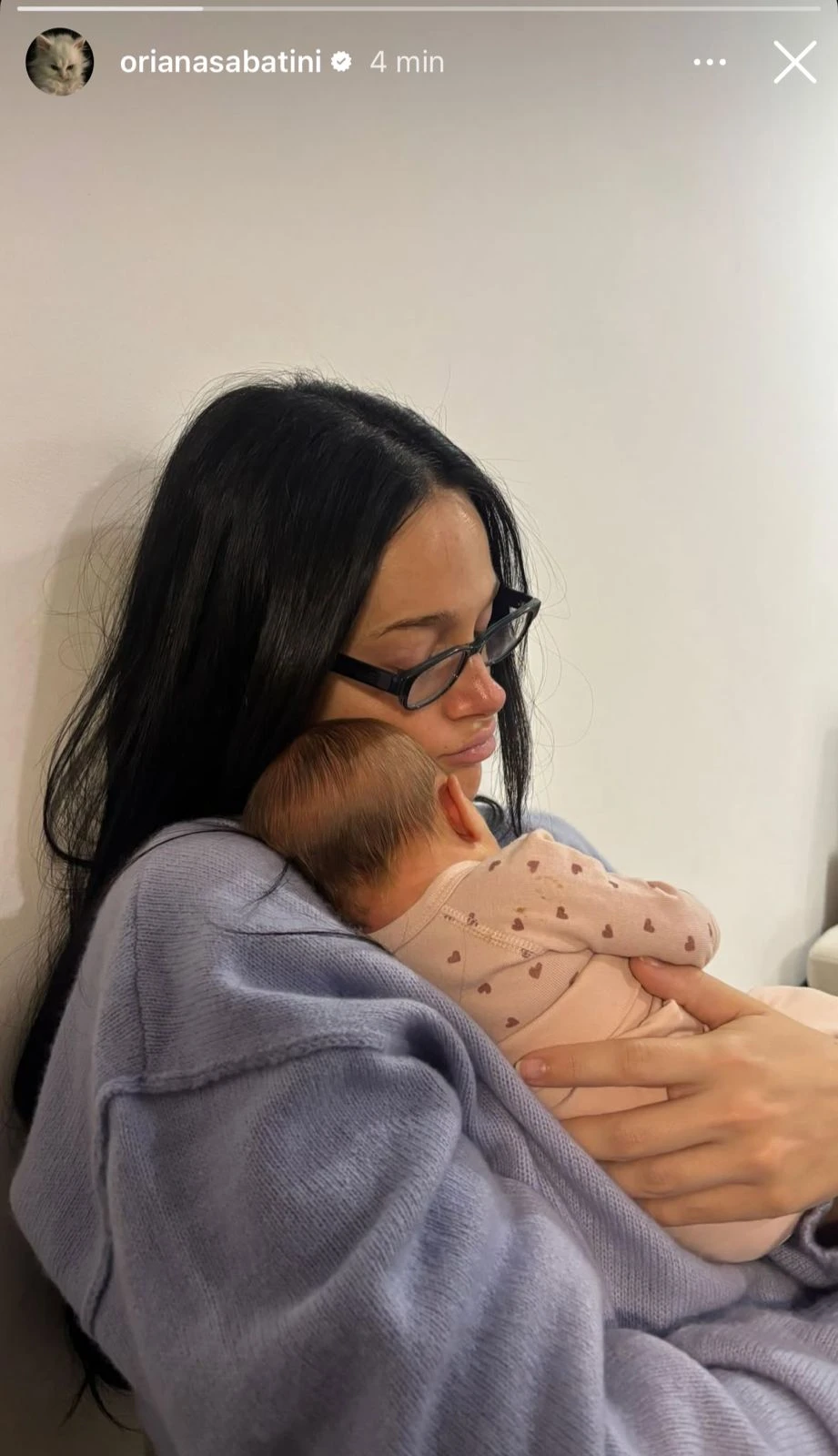 En la postal, cargada de ternura, se puede ver a la artista sosteniendo a la pequeña en brazos mientras apoya su cabeza sobre el hombro de la bebé en un gesto lleno de amor y calma. La escena refleja la intimidad de los primeros días de maternidad y muestra a Sabatini en una faceta completamente nueva, atravesada por la emoción del nacimiento.