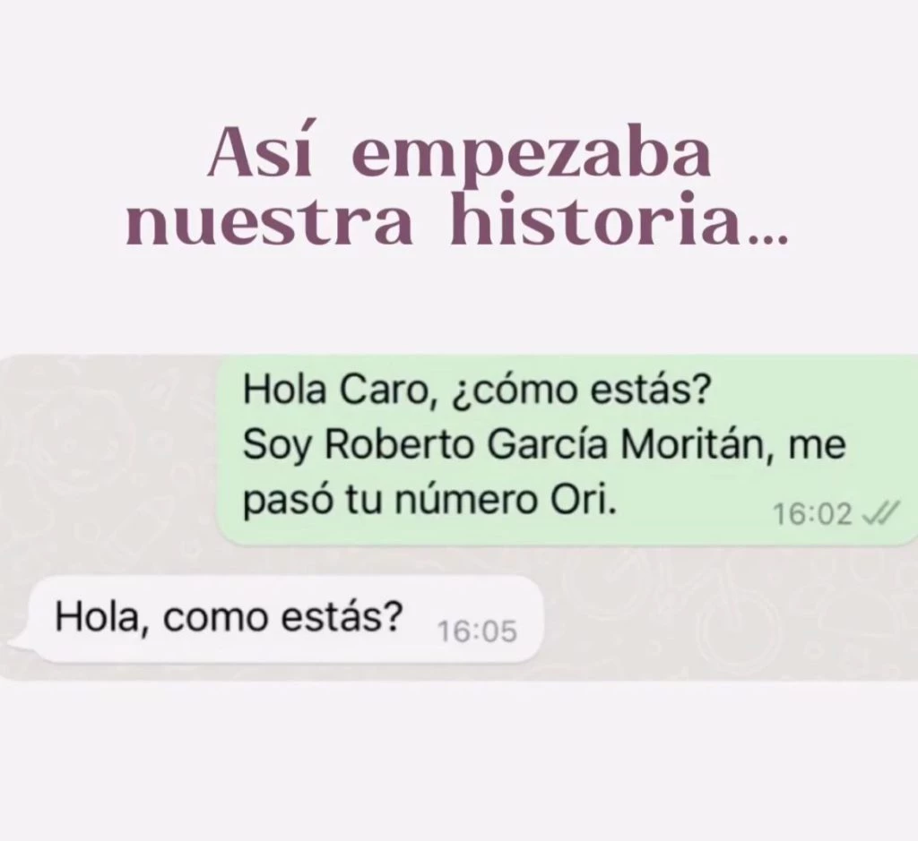 "Así empezaba nuestra historia... con un mensaje que me cambió la vida", se lee al comienzo del video editado que compartió con sus seguidores. En la captura de pantalla que exhibió, se lee: "Hola, ¿cómo estás? Soy Roberto García Moritán, me pasó tu número Ori", disparó el ahora esposo de la modelo. Muy cordial, Pampita le respondió en el mismo tono: "Hola, ¿cómo estás?".