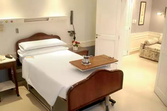 Las habitaciones se asemejan al de cualquier hotel cinco estrellas y no a las de un sanatorio, con espaciosas suites para los pacientes y sus familias.