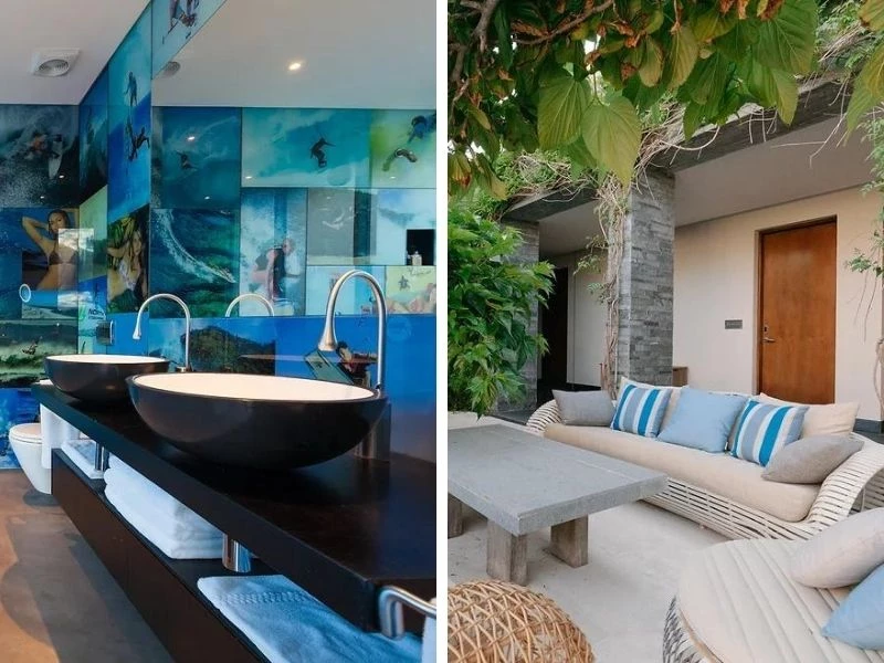 El edificio principal, construido con hermosa pizarra gris uruguaya, se define por una arquitectura abierta y espacios fluidos, lo que fomenta la convivencia entre los huéspedes. Al ingresar al edificio principal del retiro a través de las paredes del jardín, los huéspedes disfrutan de las vistas al Océano Atlántico Sur a través de la espaciosa área de recepción, al verde patio central al aire libre y finalmente a través de la sala de estar.