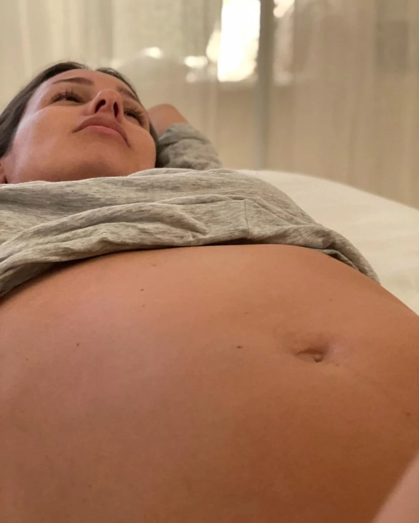 "Baby on board", escribió junto a la foto de la cuna de madera, almohadones y sábanas combinados en colores rosas y pasteles.
