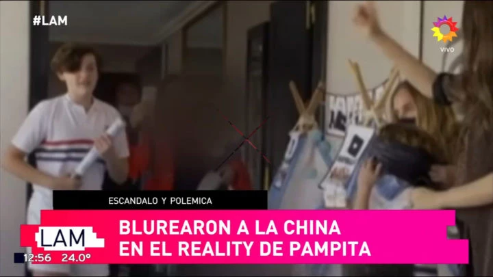 De Brito mostró el video del cumpleaños“ahí estaba la China Suárez dentro de la casa, con los chicos, en una situación normal como cualquiera, pero miren lo que le pasó a la China Suárez cuando vio el reality de Pampita”. “Acá está el fantasma de la China Suárez. La blurearon”, agregó el periodista.