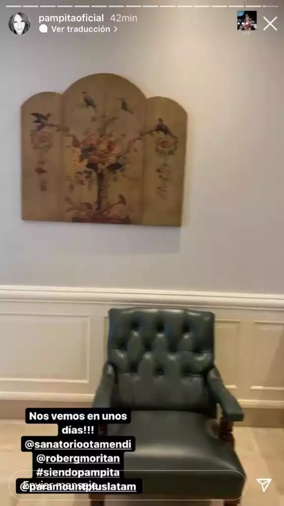 En el video que compartió en sus historias, escribió "Nos vemos en unos días". En el paneo que hizo dentro de la suite del Otamendi, se destaca una amplia cama y un sillón para amamantar.