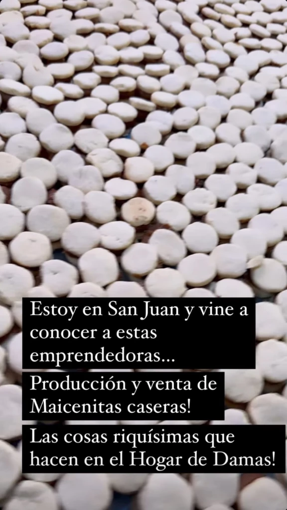 "Estoy en San Juan y vine a conocer a estas emprendedoras. Producción y venta de maicenas caseras. ¡Las cosas riquísimas que hacen en el Hogar de Damas!", compartió Carolina Ardohain en sus Instagram stories.