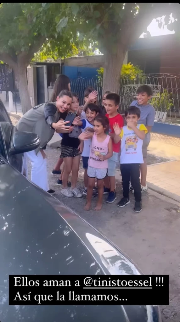 A lo que acto seguido, Pampita hizo una videollamada con la intérprete de La Triple T, quien terminó hablando con cada uno de los niños. "Ellos la aman a @tinistoessel, así que la llamamos", compartió emocionada.