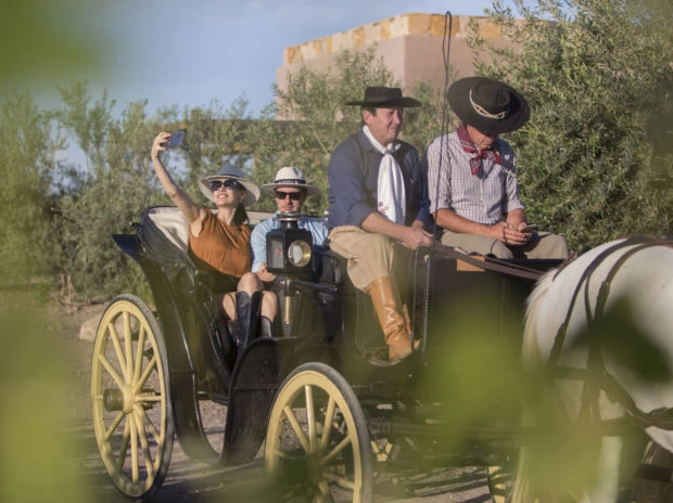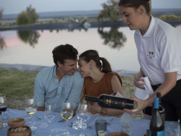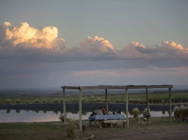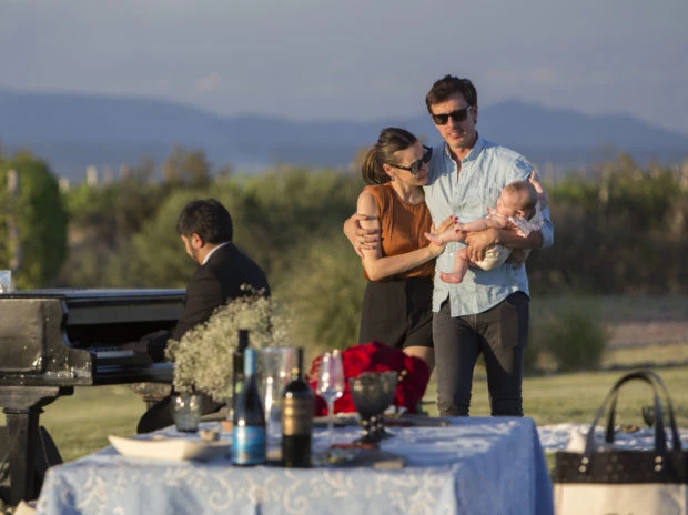 En la tarde de este sábado la pareja disfrutó de una cena romántica para festejar su aniversario. Montados en una carroza antigua My Lord del año 1920, se dirigieron hacia la laguna privada del hotel por un sendero rodeado de viñedos, donde los esperaba la sorpresa que Roberto había planificado: una cena romántica acompañados de la naturaleza.