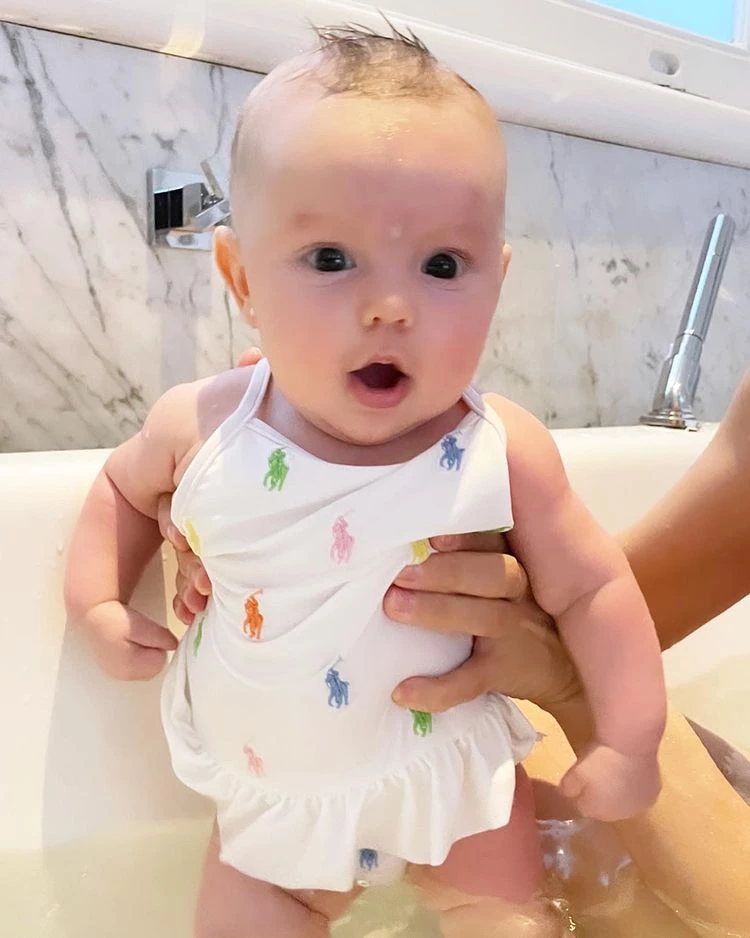 Además, en la red social de su hijita, la empresaria compartió el tierno video de este momento y mostró que ambas se encontraban muy relajadas y alegres. De hecho en un instante se puede ver que la beba de tres meses patalea y disfruta de estar en el agua junto a su mamá mientras su padre las filma para atesorar este recuerdo.