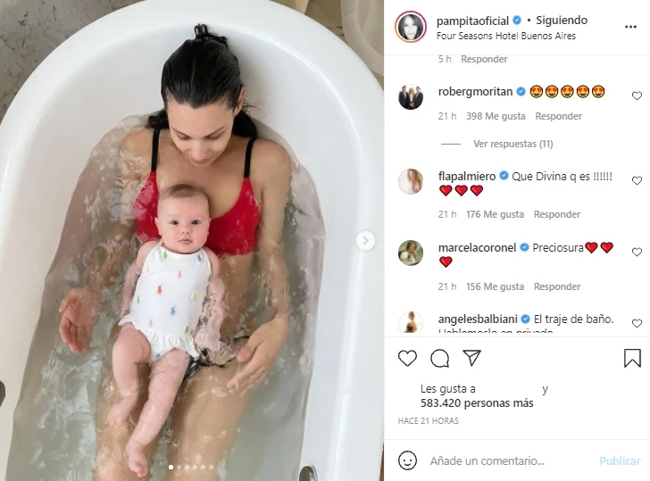 La hermosa publicación recibió más de 580 mil 'likes' en poco tiempo y miles de comentarios, entre ellos los de Flopy Tesouro, Adabel Guerrero, Flavio Palmiero y sus amigas Ángeles Balbiani, quien se encuentra en la dulce espera, y Barby Franco.