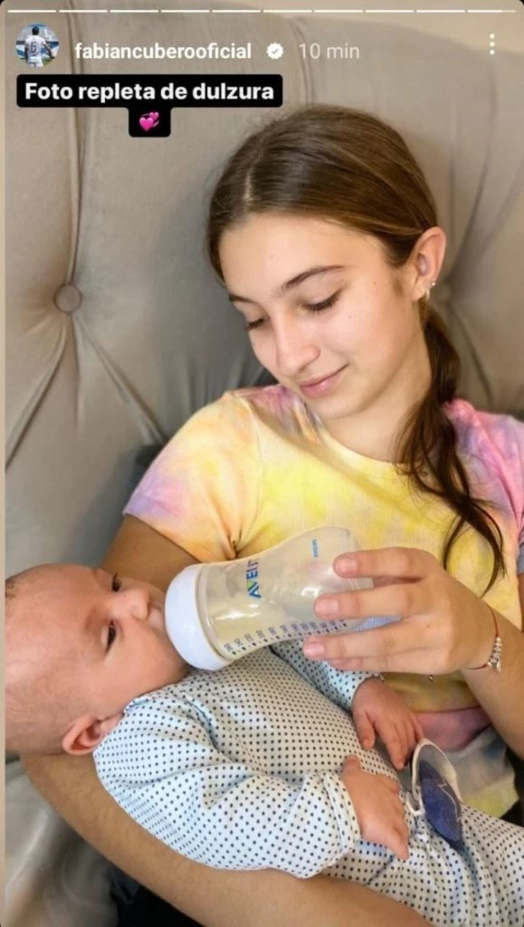 Ante su 1 millón de seguidores el ex futbolista subió una foto de Indiana junto al mas chiquito de la familia. Allí escribió: "Foto repleta de dulzura". Allí se puede ver a la nena sosteniendo a su hermano menor dándole la mamadera.