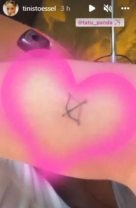 Desde allí la cantante compartió ante sus 18 millones de seguidores un nuevo tatuaje que se realizó en Estados Unidos. La joven que ya tiene varios tatuajes en su cuerpo eligió esta vez un particular diseño: un arco y flecha de cupido. Rápidamente sus fans vincularon este dibujo con el amor que siente por su novio.