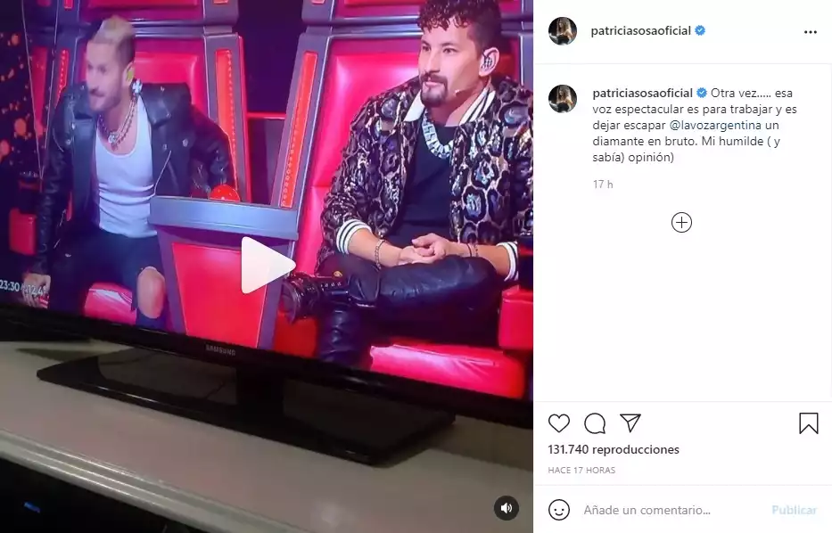 La cantante no ocultó su indignación y cuestionó sin piedad a Lali, Soledad Pastorutti, Montaner y Mau y Ricky. "Otra vez... esa voz espectacular es para trabajar y es dejar escapar un diamante en bruto", manifestó junto a un breve clip de dicho momento. Y continuó picante: "Mi humilde y sabía opinión".