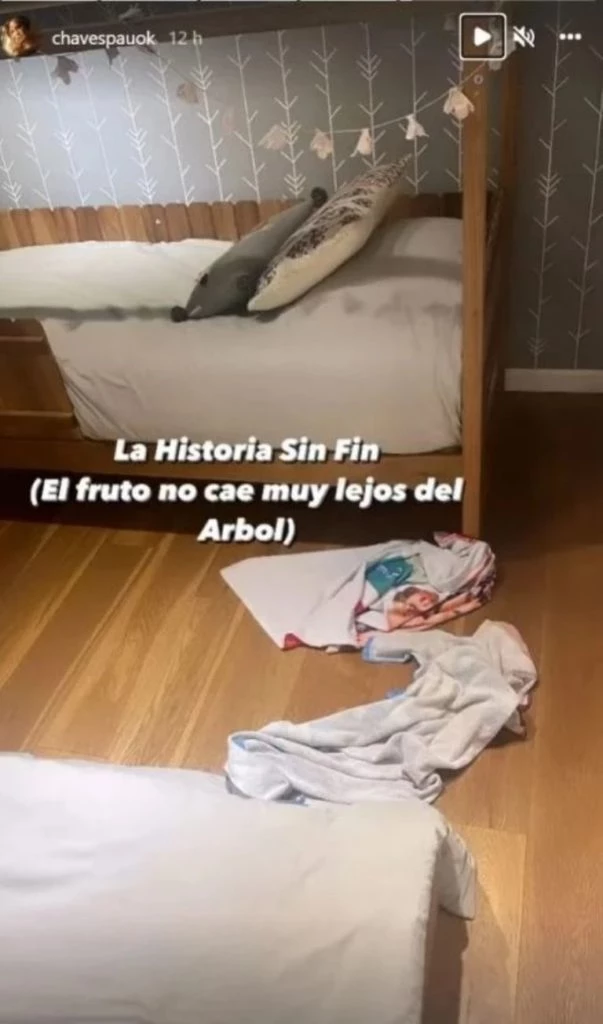 Ahora, a través de las stories de Instagram, realizó una nueva denuncia sobre el tema, pero el acusado no fue Pedro Alfonso, sino sus hijos. En la imagen se pueden ver varios toallones tirados en la habitación de los menores, cerca de una de las camas. “La historia sin fin… (El fruto no cae muy lejos del árbol)”, escribió Chaves y dejó en claro que sabe que va a seguir lidiando con lo mismo.