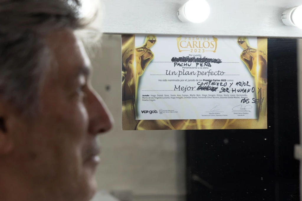 Luego, todos comienzan a rezar: “Padre Nuestro que estás en el cielo, santificado sea tu nombre, venga a nosotros tu…”. Entretanto, del lado de la Sala Emilio Disi rebosante de personas, estalla la música: una especie de cumbia que anuncia el inicio del show. Los actores, con los ojos aún cerrados y las manos entrelazadas, terminan la oración con un “Amén” y exclaman: “Gracias, gracias, gracias. ¡Un plan per-fec-to!”, antes de lanzar un grito y aplaudir en ronda. En segundos, será el público el que los aplauda.