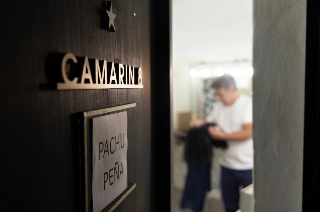 A Pachu Peña lo encontramos en el Camarín Nº 8 ubicado justo a la izquierda del escenario. “No es tan grande como el de otros años, pero me queda practiquísimo para hacer todos los cambios de vestuario que necesito hacer”, nos cuenta antes de mostrarnos el perchero en el que surgen algunos de los looks que lucirá, como el saco con trazos de colores metalizados con el que aparecerá al comienzo de la función.