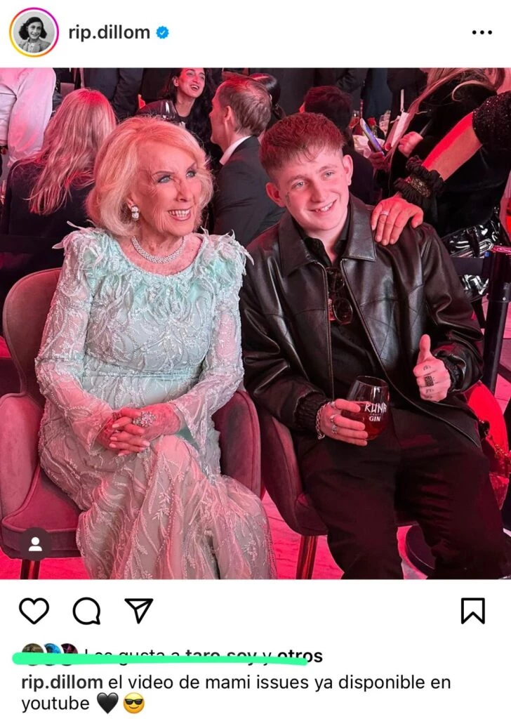 "Me acerqué y me presenté. Le dije 'Hola Mirtha, soy Dillom, soy músico... Y ella me dijo 'Ay sí, me suena tu cara ¿Diyon? Pero yo creo que no me ubicaba (se ríe). Después Marcela Tinayre, quien estaba al lado, me preguntó cuántos seguidores tenía en Instagram. Fue un flash todo", expresó aún sin poder creerlo.