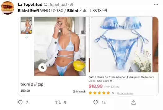 Sin embargo, el precio no sólo fue motivo de críticas, sino que también muchas mujeres hicieron hincapié en que las prendas son diminutas y los diseños muy similares a otras marcas. Lo cierto es que hasta el momento, sus estampados y colores son limitados. También su única forma de pago es con tarjeta de débito al contado y no posee la opción de comprar en cuotas.