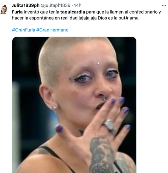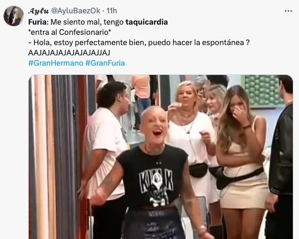 Segundos después, Furia expresó: "Brother, ¿me llamás para el confesionario, que llamé recién, porque me siento mal?". Rápidamente sus compañeros se preocuparon por ella y comenzaron a preguntarle por sus síntomas.