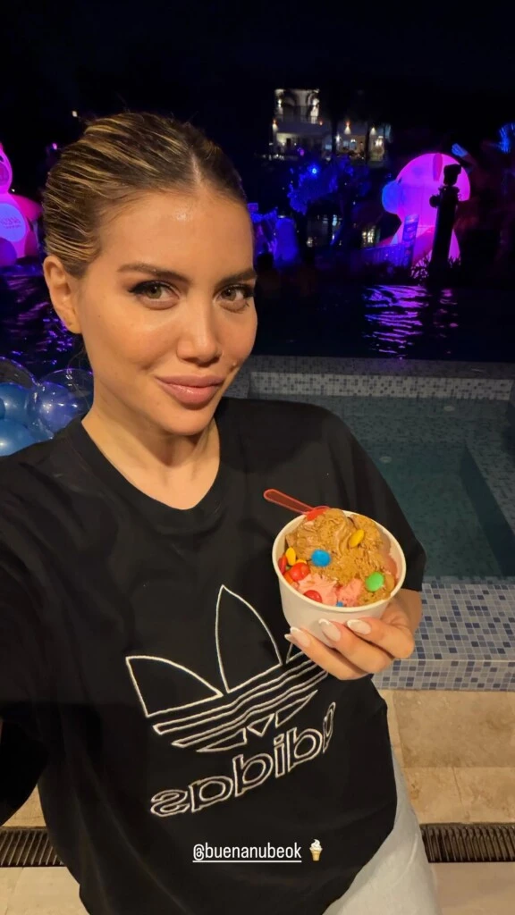 Wanda Nara acompañó a su hijo durante toda la noche y eligió un look relajado y canchero: remera negra de Adidas, jeans claros y maquillaje natural, en sintonía con el espíritu descontracturado del evento. Siempre cerca de Constantino, se la vio sonriente, atenta y disfrutando del festejo.