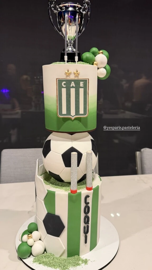 Además, Constantino tuvo su torta principal personalizada con los colores y el escudo del Club Atlético Estudiantes, con referencias futboleras y su apodo familiar, “Coqui”.