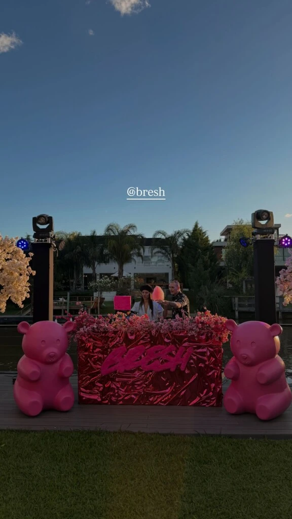 La celebración tuvo una estética inspirada en una auténtica fiesta Bresh: luces de colores, globos, efectos especiales y una puesta en escena que transformó el jardín y la pileta en una verdadera pista de baile al aire libre. La música, el clima distendido y la presencia de muchos adolescentes marcaron el pulso de una noche pensada especialmente para el cumpleañero.