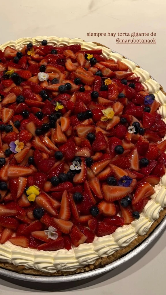 Uno de los grandes protagonistas fue el sector dulce. Allí se destacó una tarta de Maru Botana, cargada de frutillas, arándanos y abundante crema, que se llevó todos los aplausos.