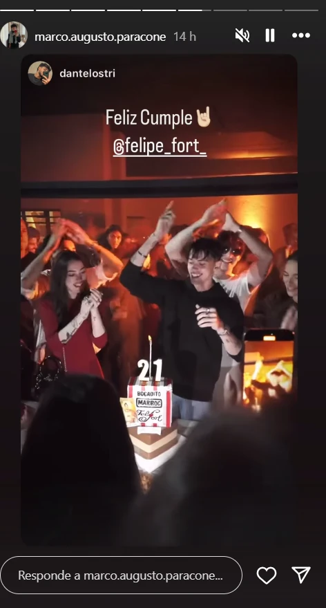 En tanto, en un posteo de uno de los mejores amigos de Felipe también se puede ver con claridad que Priscila no sólo estuvo presente en la celebración sino que también acompañó al joven cuando sus amigos le cantaron el Feliz cumpleaños.