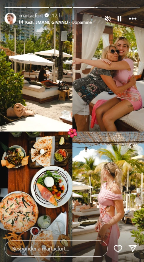 En sus historias, la hija de Ricardo Fort también compartió el especial menú que disfrutó en su día, una postal de ella abrazada a Marisa y otras de su look veraniego para comenzar su año, demostrando así que no festejó con Felipe pues estaban a miles de kilómetros de distancia.