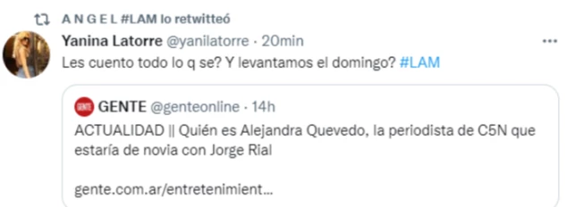El domingo pasado, la periodista Yanina Latorre agitó a sus seguidores y brindó detalles únicos sobre el que sería el divorcio del año. "¿Les cuento todo lo que se?", arengó la panelista. Luego abrió un hilo de Twitter contando que la separación comenzó en octubre del año pasado. Romina se quedó en la casa de Belgrano R en la que convivían, actualmente está a la venta. "Él se muda a Palacio Cabrera, donde se encuentra con sus nuevas conquistas", aseguró Latorre.